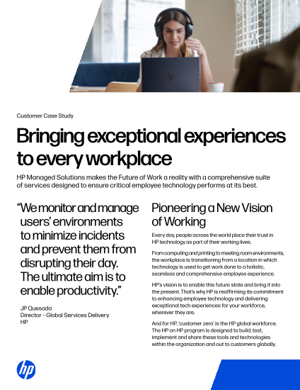 HP’s vision is to enable this future state and bring it into the present. That’s why HP is reaffirming its commitment to enhancing employee technology and delivering exceptional tech experiences for your workforce, wherever they are.