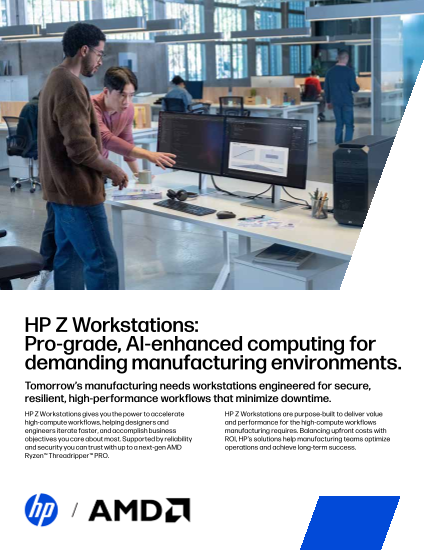 Download now to see how HP Z Workstations are purpose-built to deliver value and performance for the high-compute workflows manufacturing requires. Balancing upfront costs with ROI, HP’s solutions help manufacturing teams optimize operations and achieve long-term success.